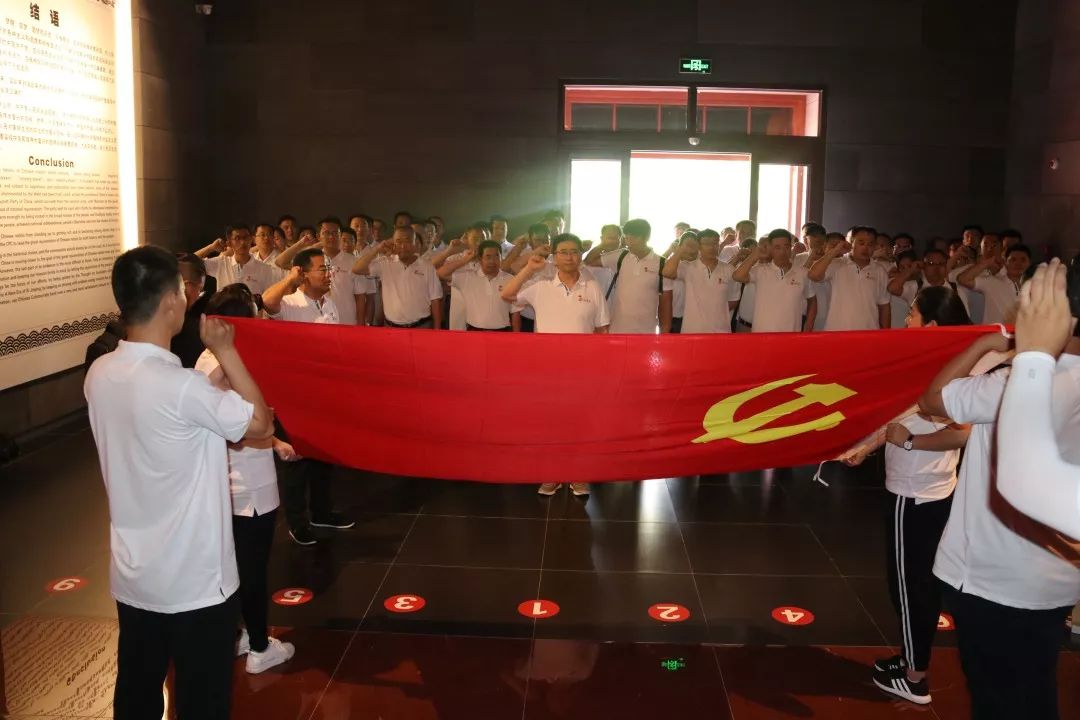 在歷史選擇展館,一段段歷史資料和物件,向黨員們?cè)V說著那段艱苦的歷史。在這里,全體黨員干部再次重溫了入黨誓詞,在鏗鏘有力的宣誓聲中,全體黨員堅(jiān)定了理想信念,不忘入黨初心。